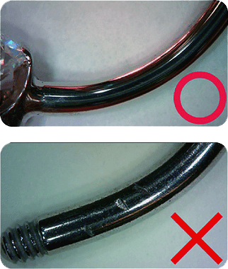 丁寧に磨かれていないものは表面が凸凹になっているため、着脱際にピアッシングホールを傷つけてしまいます。